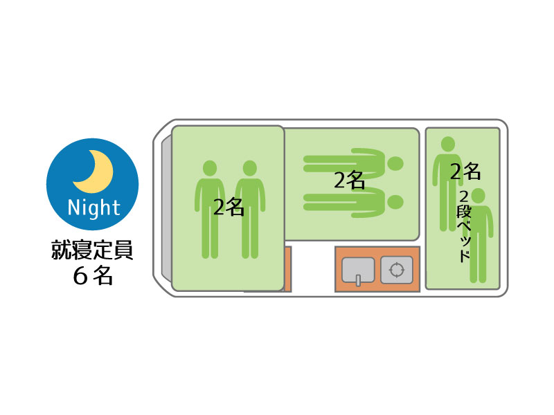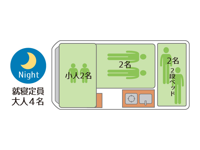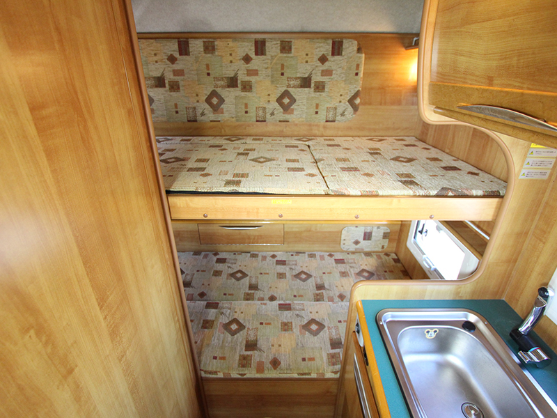 2段ベッドが魅力です。 4WDなので雪道も安心 力強いターボエンジン 定員8名、就寝大人6名 AT、2500cc 軽油 禁煙、ペット不可