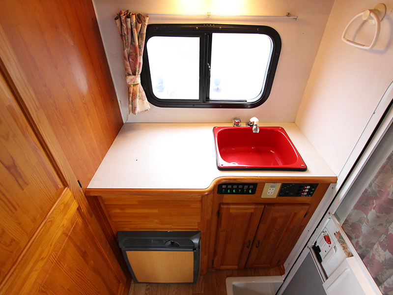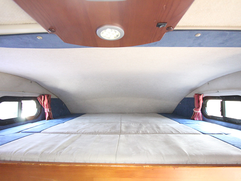 ライトキャブコンながら後部にダブルベッド装備 4WDなので雪道も安心定員6名、就寝大人4名 AT、1800cc ガソリン 禁煙、ペット不可