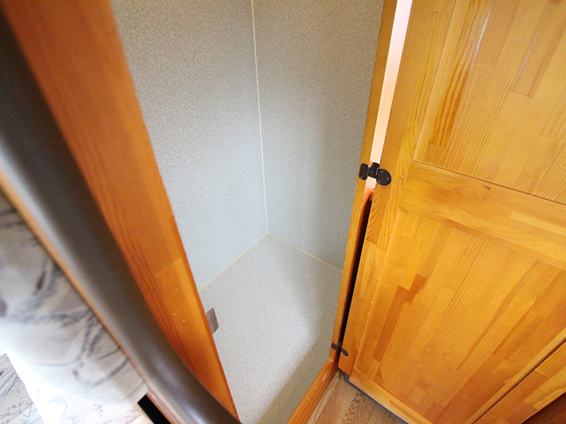 この写真で左側がサロン。 その奥がトイレルーム。 右側がキッチン 一番奥が2段ベッドです。