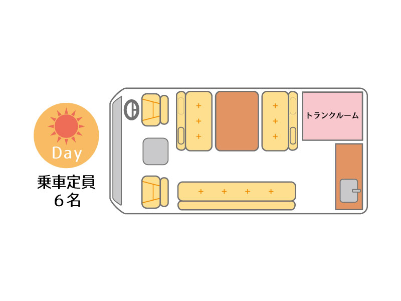 乗車定員は6名ですが、大人7名程度のスペースがあります。