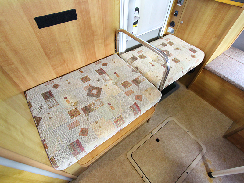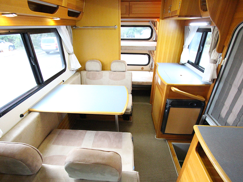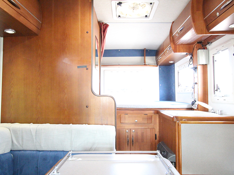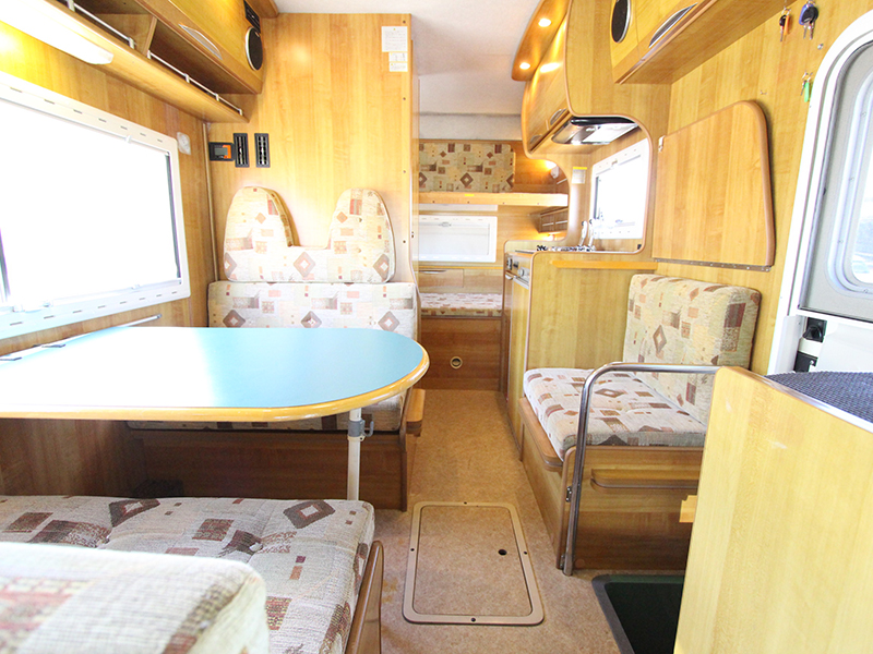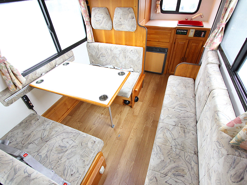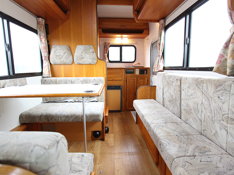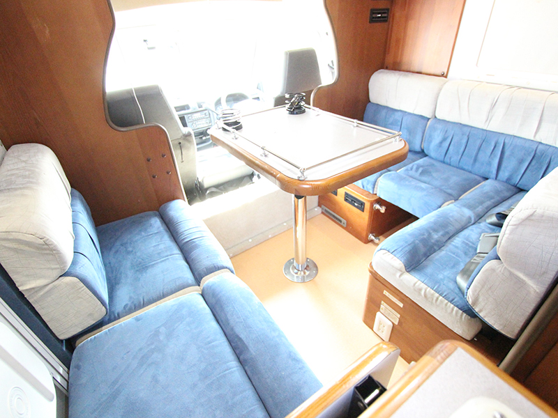 広いサロンが人気です。 テーブルを囲んで広々と使えます。 定員6名、就寝大人4名 AT、1800cc ガソリン 禁煙、ペット不可